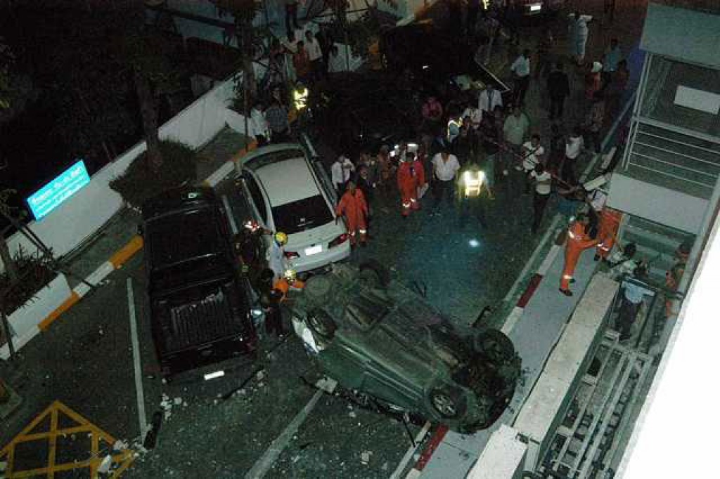 หลังเกิดเหตุพนักงานสอบสวน ได้ประสานตำรวจพิสูจน์หลักฐาน ตรวจสอบที่เกิดเหตุอย่างละเอียด พร้อมทั้งประสานผู้เชี่ยวชาญด้านรถยนต์ ร่วมตรวจสอบหาสาเหตุที่ทำให้รถยนต์คันนี้ ตกจากอาคารจอดรถ พบว่า ระบบต่าง ๆ ของรถยนต์ไม่มีความบกพร่อง แต่พบขวดน้ำดื่มซึ่งบรรจุน้ำเต็มขวด ขัดอยู่ใต้แป้นเบรค โดยที่ด้านหัวของขวดน้ำดื่มอยู่บริเวณคันเร่ง ทำให้ผู้ขับขี่ไม่สามารถเหยียบเบรคได้