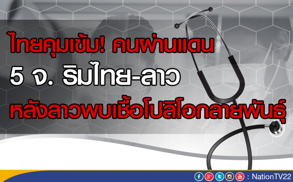 ไทยสั่งคุมเข้มคนผ่านแดน 5 จังหวัดชายแดนไทย-ลาว หลังฝั่งลาวพบเชื้อโปลิโอกลายพันธุ์ คาดให้วัคซีนไม่ครอบคลุมต้น เหตุเชื้อพัฒนาตัวเองจนก่อโรค