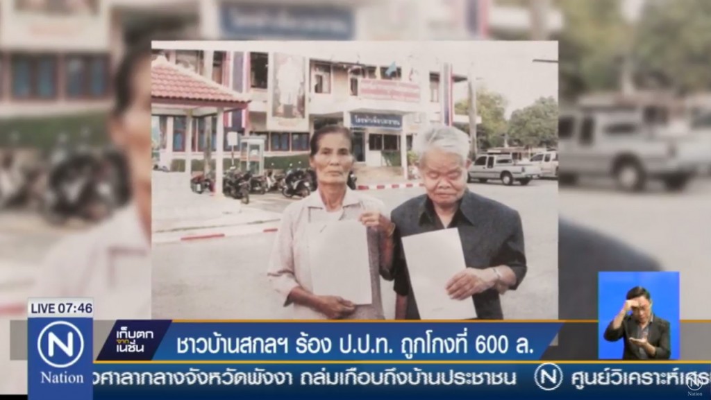 7 มีนาคมที่ผ่านมา 'ศิลธรา แสนสัมโรง' ทายาท 'มนูญ แสนสัมโรง' เข้าพบรองปลัดกระทรวงยุติธรรม พ.ต.อ.ดุษฎี อารยวุฒิ ให้ตรวจสอบที่ดินของผู้เป็นพ่อ ถูกโอนกรรมสิทธิ์ให้ไปอยู่ในชื่อของนายกเทศมนตรีนครสกลนคร 'โกมุท ทีฆธนานนท์' โดยเชื่อว่า มีการปลอมแปลงเอกสารสิทธิ์