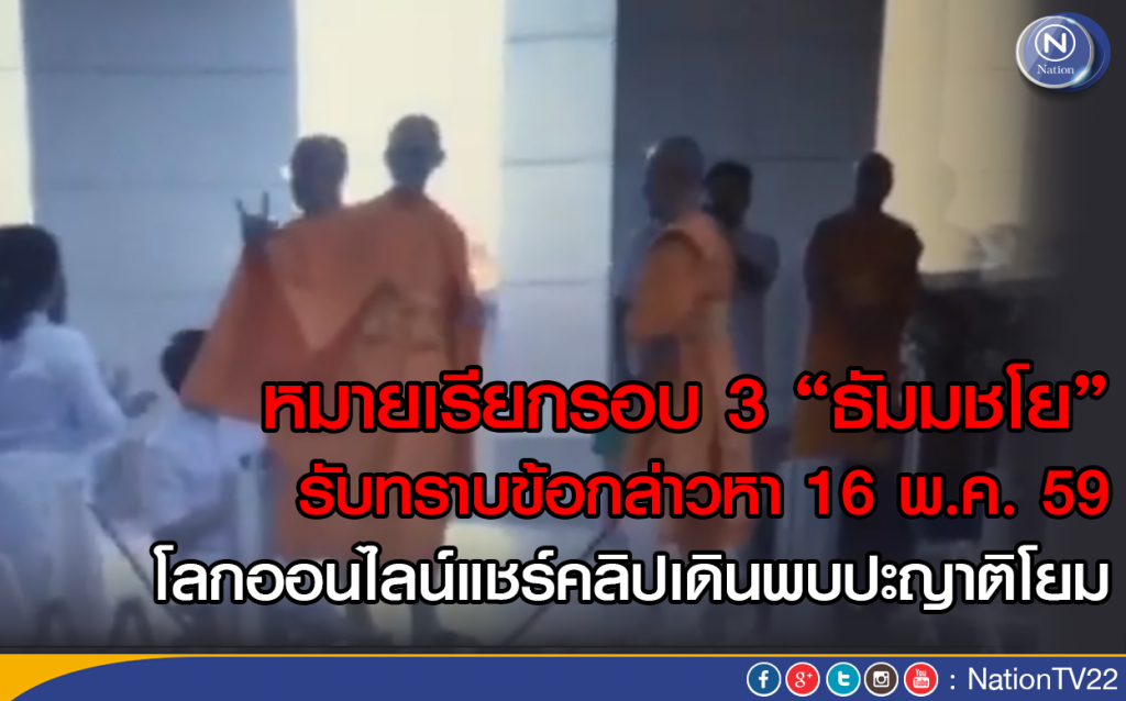 หมายเรียกรอบ 3 ธัมมชโย รับทราบข้อหา โลกออนไลน์แชร์คลิปเดินพบปะญาติโยม