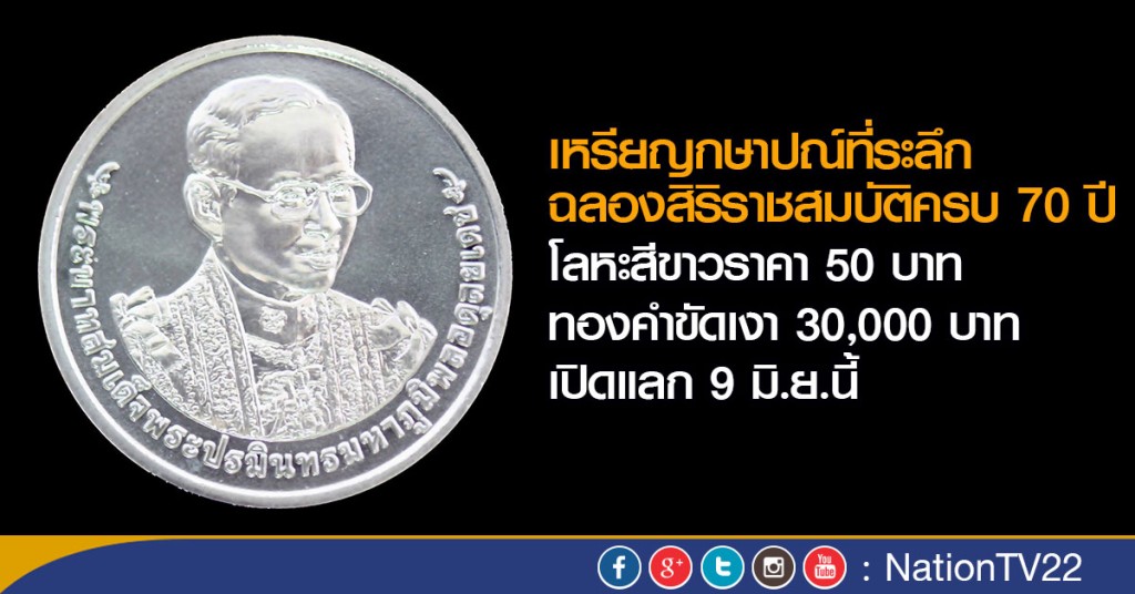วันนี้ (7 มิ.ย.) นายจักรกฤศฏิ์ พาราพันธกุล อธิบดีกรมธนารักษ์ เปิดเผยว่า ในปีมหามงคล 2559 ซึ่งเป็นปีที่พระบาทสมเด็จพระเจ้าอยู่หัวภูมิพลอดุลยเดช ทรงครองสิริราชสมบัติครบ 70 ปี ในวันที่ 9 มิถุนายน 2559 กรมธนารักษ์ จึงได้จัดทำเหรียญกษาปณ์ที่ระลึกเฉลิมพระเกียรติ พระบาทสมเด็จพระปรมินทรมหาภูมิพลอดุลยเดช เนื่องในโอกาสการจัดงานฉลองสิริราชสมบัติครบ 70 ปี ขึ้นมาเพื่อเฉลิมพระเกียรติและเฉลิมพระเกียรติคุณอันยิ่งใหญ่ ที่ทรงมีต่อพสกนิกรทุกศาสนา ทุกเชื้อชาติ ได้มีความเป็นอยู่ดี มีความสุขอย่างยั่งยืนถ้วนทั่ว ตลอดระยะเวลาที่ทรงครองสิริราชสมบัติมายาวนาน 70 ปี โดยได้จัดทำเหรียญที่ระลึกเฉลิมพระเกียรติดังกล่าว