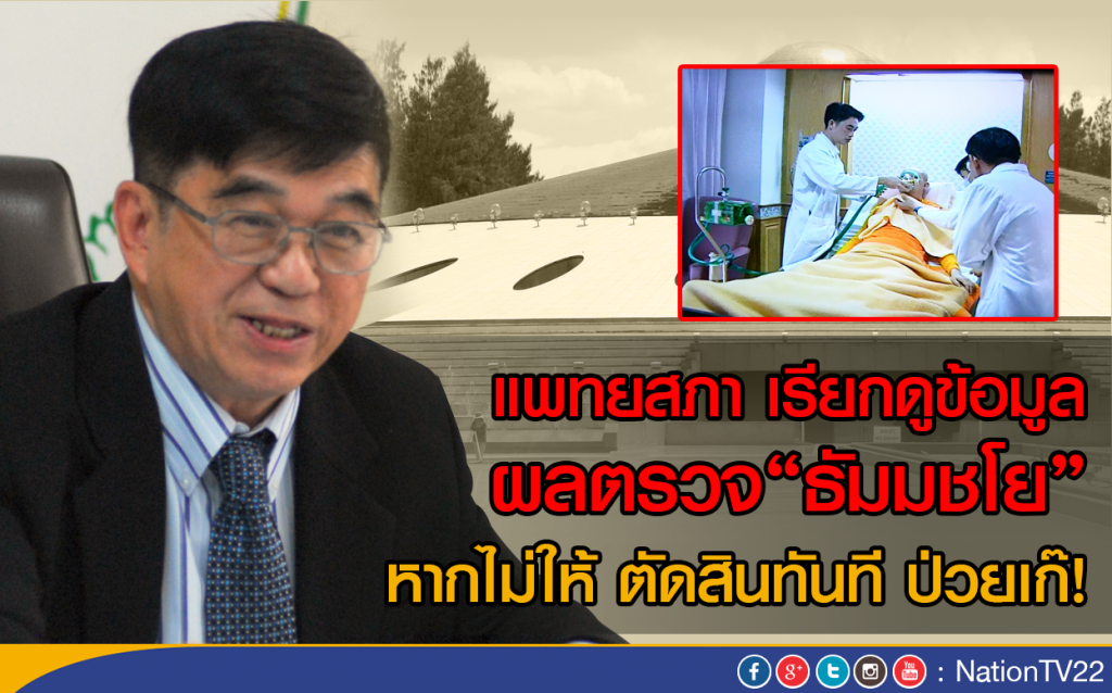 ศ.นพ.สมศักดิ์ โล่ห์เลขา นายกแพทยสภา ให้สัมภาษณ์ก่อนการประชุมคณะกรรมการแพทยสภา ซึ่งมีวาระเกี่ยวกับการตั้งอนุกรรมการจริยธรรมชุดพิเศษตรวจสอบข้อเท็จจริงการออกใบรับรองแพทย์อาการอาพาธของพระเทพญาณมหามุนีหรือพระธัมมชโย หลังจากมีการร้องเรียนต่อแพทยสภาให้ตรวจสอบใบรับรองแพทย์เป็นเท็จหรือไม่ว่า อนุกรรมการจริยธรรมฯจะเชิญแพทย์ที่ถูกร้องเรียนเข้ามาให้ข้อมูล และจะเรียกข้อมูลเอกสารหลักฐานการตรวจพระธัมมชโยทั้งผลเลือด ผลอัลตราซาวด์ และผลเอ็กซเรย์ จากคลินิกสหรัตนเวช และแพทย์ที่ออกใบรับรงแพทย์ ซึ่งจะทำให้สามารถบอกได้ว่าคนไข้มีอาการป่วยจริงตามที่มีกการระบุในใบรับรองแพทย์หรือไม่ แพทยสภาไม่จำเป็นต้องเข้าไปตรวจคนไข้เอง