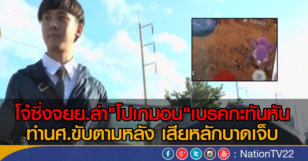โชคยังดีที่ขับขี่มาไม่เร็วซึ่งระหว่างทางที่ตนขับขี่มาสังเกตเห็นว่ารถจักรยานยนต์คันดังกล่าวผิดปรกติ ในมือถือโทรศัพท์มือถือเหมือนกำลังมองหาอะไรอยู่สักอย่าง ท่าทางเหมือนเล่นเกมส์โปรเกม่อนและได้เห็นคนซ้อนสะกิดคนขับเหมือนเจออะไรบางอย่าง ทำให้คนขับเบรครถจักรยานยนต์กระทันหัน จึงเกิดอุบัติเหตุดังกล่าว