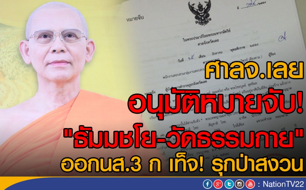 พบมีการออกหลักฐาน นส.3 ก อันเป็นเท็จ รุกล้ำเข้าไปในพื้นที่ป่าสงวนแห่งชาติป่าภูเปือย ป่าภูขี้เถ้าและป่าภูเรือ เนื้อที่รวม 129 ไร่ โดยออกให้ในชื่อพระไชยบูลย์ สุทธิผล หรือพระธัมมชโย อันเป็นความผิดฐาน ก่อสร้าง แผ้วถาง หรือกระทำด้วยประการใดๆ อันเป็นการทำลายป่า หรือเข้ายึดถือ หรือครอบครองป่า เพื่อตนเองหรือผู้อื่น ตาม พ.ร.บ.ป่าไม้ พ.ศ.2484 เข้าไปยึดถือ ครอบครอง รวมตลอดถึงการก่อสร้าง หรือ เผาป่าฯ และมีความผิดตาม ม.9 (108 ทวิ) ตามประมวลกฎหมายที่ดิน พ.ศ.2497 และ พ.ร.บ.ป่าสงวนแห่งชาติ พ.ศ.2507 ม.14