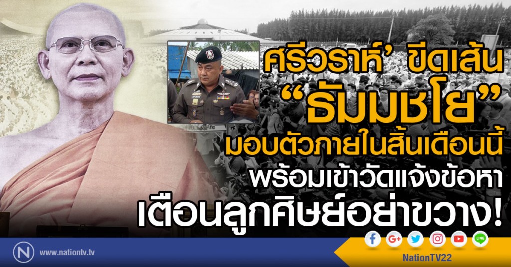 "ศรีวราห์" ขีดเส้น "ธัมมชโย" มอบตัวในสิ้นเดือนนี้ พร้อมเข้าวัดแจ้งข้อหา เตือนลูกศิษย์อย่าขวาง