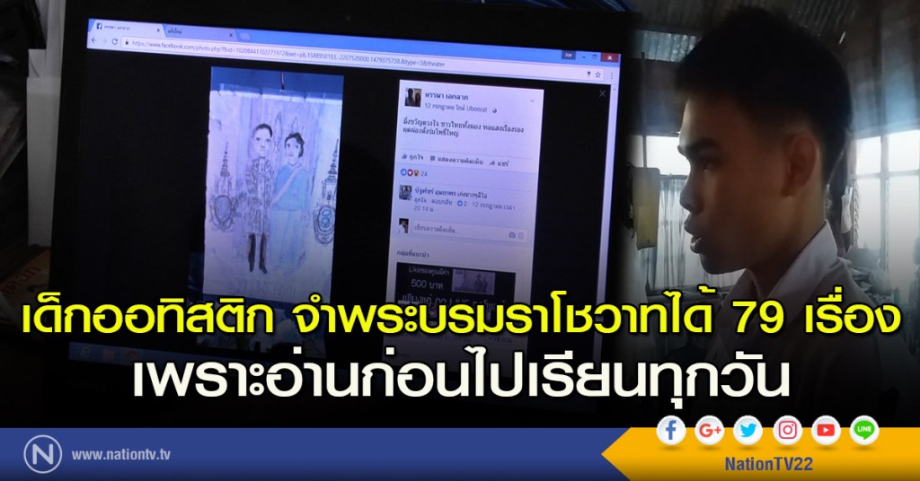 ที่บ้านหนองแต้ หมู่ 6 ต.บ้านดง อ.เขื่อนอุบลรัตน์ จ.ขอนแก่น นายภูตินันท์ เอกลาภ อายุ 18 ปี ซึ่งเป็นเด็กออทิสติก และเคยสร้างความประทับใจ วาดพระบรมฉายาลักษณ์ของพระเจ้าอยู่หัวรัชกาลที่ 9 ติดไว้รอบบ้าน ติดภาพสักการะไว้หน้าบ้าน จนหลายคนในหมู่บ้านมาร่วมกิจกรรมด้วย เนื่องในกิจกรรมวันพ่อ ได้สร้างความประทับใจและความทึ่งอีกครั้ง เพราะสามารถจดจำพระบรมราโชวาทและพระราชดำรัสของพระบาทสมเด็จพระมหาปรมินทรภูมิพลอดุลยเดช ได้ถึง 79 เรื่อง