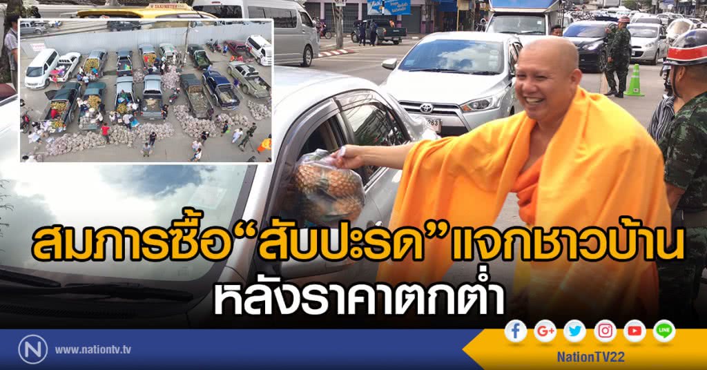 พระอาจารย์พบโชค ติสสะวังโส เจ้าอาวาสวัดห้วยปลากั้ง ตำบลริมกก อำเภอเมือง จังหวัดเชียงราย นำสับปะรดมาแจกให้กับประชาชนที่สัญจรไปมาผ่านบริเวณสี่แยกถนนบรรพปราการ อำเภอเมือง จังหวัดเชียงราย โดยมีเจ้าหน้าที่จากวัดห้วยปลากั้ง พร้อมด้วยเจ้าหน้าที่สมาคมศิริกรณ์เชียงรายบรรเทาสาธารณภัยเชียงรายและเจ้าหน้าที่ทหารมณฑลทหารบกที่37 ค่ายเม็งรายมหาราช จังหวัดเชียงรายเชียงราย ได้ช่วยกันนำสับปะรดที่ใส่บรรทุกมากับรถของเกษตรกรนำมาบรรจุใส่ถุง ก่อนจะนำมาแจกจ่ายให้กับประชาชนในจังหวัดเชียงรายได้นำไปรับประทานกับแบบฟรีๆไม่เสียเงิน