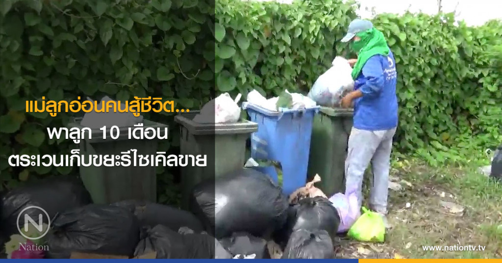 แม่ลูกอ่อนคนสู้ชีวิต…พาลูก 10 เดือนตระเวนเก็บขยะรีไซเคิลขาย