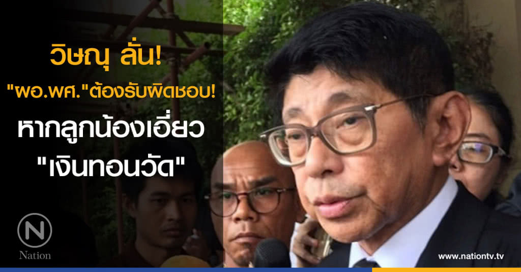 เมื่อถามว่า การตรวจค้นของ ปปป.วานนี้ (21 ก.ย.) มีพระมาเกี่ยวข้องถึง 2 รูป จะทำให้เกิดการกระทบกระทั่งหรือไม่ นายวิษณุ กล่าวว่า ไม่กระทบ จะกี่รูปก็ไม่เป็นไร ก็ดำเนินการไปเรื่อยๆ หากพบว่าผิด การตรวจสอบก็ใช้ขั้นตอนตามกฎหมายและพระธรรมวินัย เมื่อบ้านเมืองเป็นผู้ดำเนินการก็ต้องใช้กฎหมาย แต่การทำนั้นจะขัดต่อพระธรรมวินัยไม่ได้ เช่น อยู่ดีๆ เอาพระมาขังคุกไม่ได้ หากท่านผิดก็ต้องทำให้สึกก่อน เป็นต้น ทั้งนี้เจ้าหน้าที่ต้องใช้กฎหมายจะเรียกมาสอบหรือเราจะไปเองก็ได้ แต่การดำเนินการต้องเริ่มที่พศ.ก่อน ไม่ใช่คนอื่นผิดหมด แต่พศ.ไม่ผิด.