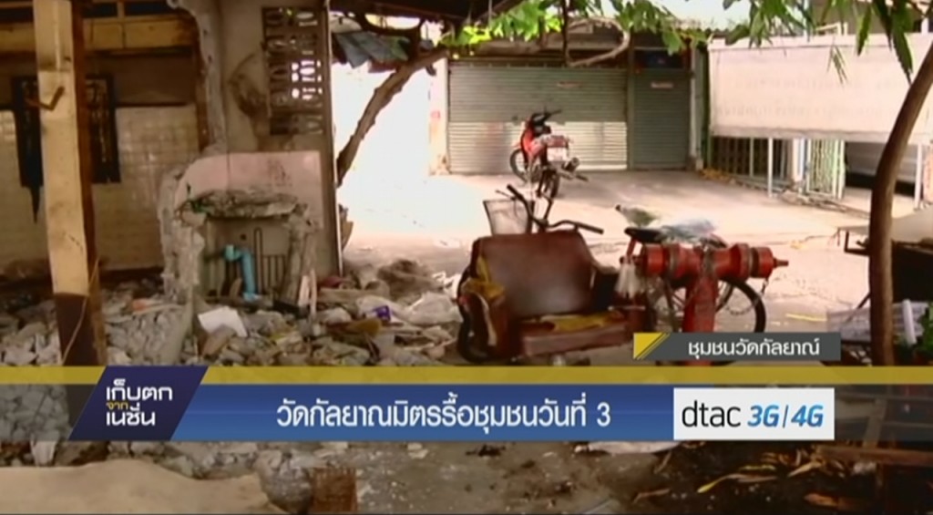 เข้าสู่วันที่ 3 ของการเข้ามารื้อบ้านชาวบ้านของวัดกัลยาณมิตร หลังศาลฏีกามีคำสั่งให้ชาวบ้านคืนที่ดินให้วัด ค่อนข้างเงียบเหงา ซึ่งเมื่อวานนี้ ชุมชนวัดกัลยาณ์ได้เดินทางยื่นหนังสือต่อผู้บริหารสำนักพุทธ วอนมหาเถรสมาคมสั่งพักงานหรือย้ายเจ้าอาวาสวัดกัลยาณ์แต่ยังไม่ได้รับคำตอบ