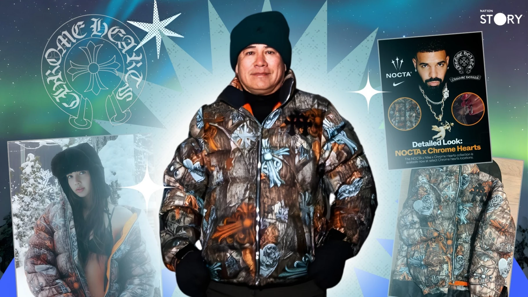 ความพิเศษที่ทำให้แจ็กเก็ตรุ่นนี้ถูกจัดอยู่ในหมวดหมู่ "ของหายาก" (Rare Item) คือการนำโครงสร้างสปอร์ตแวร์ของ NOCTA มาตีความใหม่ผ่านงานคราฟต์ระดับไฮเอนด์ ตกแต่งด้วยแพตช์หนังแท้ทรงไม้กางเขน (Cross Patch) ซึ่งเป็นเอกลักษณ์ ของ Chrome Hearts โดยใช้ช่างฝีมือเย็บด้วยมือประดับทั่วทั้งตัว รวมถึงอะไหล่ซิปและกระดุมที่ผลิตจาก เงินแท้ 925 ตามมาตรฐานของแบรนด์
