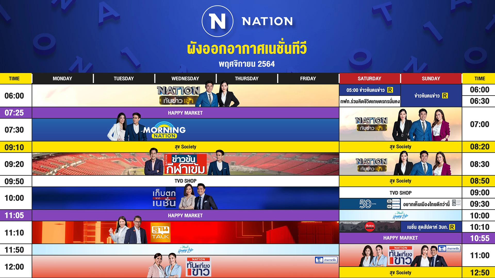 ผังออกอากาศ NationTV ประจำเดือน พฤศจิกายน 2564