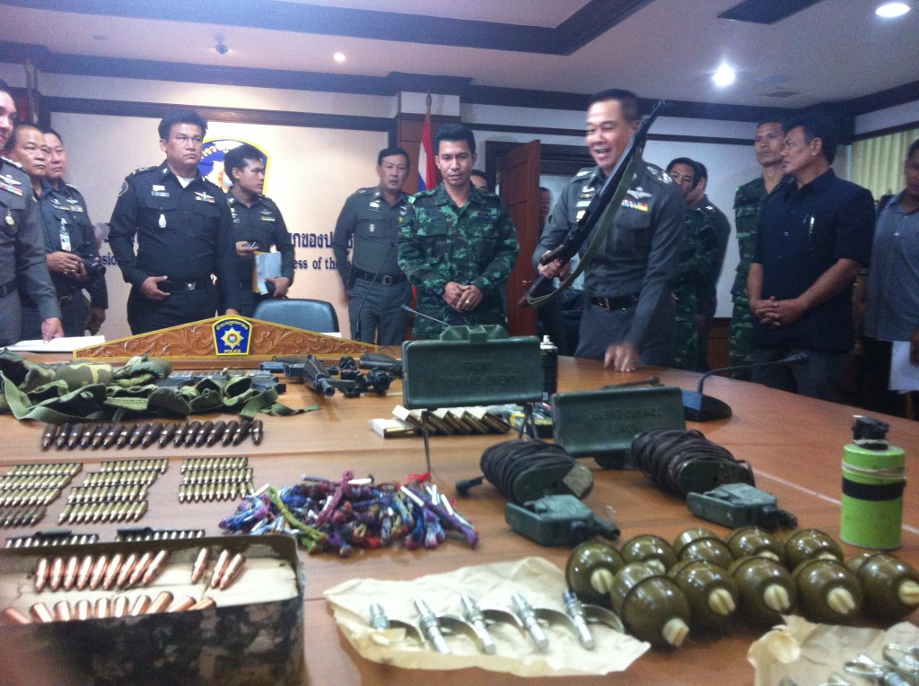 โดยฝ่าฝืนกฎหมาย "การจับกุมดังกล่าวเจ้าหน้าที่ยึดของกลางเป็นอาวุธสงครามที่ผู้ต้องหาครอบครองจำนวนมาก ประกอบด้วย อาวุธปืน เอเค 47 หรืออาก้า จำนวน 2 กระบอก หมายเลขปืน 2925713 และ2506728 ซองกระสุน 3 ซอง อาวุธปืน เอ็ม 16 เอ 1 จำนวน 1 กระบอก หมายเลขปืน 4919694 ซองกระสุน 4 ซอง กล้องเล็งยิง 2 กล้อง พร้อมเครื่องกระสุนชนิดเอเค 47 ขนาด 7.62 มม. จำนวน561 นัด ชนิดเอ็ม 16 ขนาด 5.56มม. จำนวน235นัด กระสุนขนาด 12.7 มม. จำนวน 17 นัด กระสุนขนาด .45 มม. จำนวน 15 นัด กระสุนขนาด .32 มม. จำนวน 41 นัด กระสุนปืนคาร์บิน ขนาด .30 มม. จำนวน 108 นัด ระเบิดเครโม 2 ลูก พร้อมม้วนสายไฟ 2 ม้วน เครื่องจุดแม็คนิโต 2 อัน ระเบิดแบบขว้างสังหาร ชนิด อาร์จีดี 5จำนวน 10 ลูก พร้อมชุดกระเดื่อง 1 กระป๋อง เลขล็อตที่ 58-89 ระเบิดควัน 1 ลูก เชื้อประทุไฟฟ้า 67 อัน เสื้อเกราะกันกระสุนแบบใยแก้ว 1 ตัว กระเป๋าใส่ซองกระสุน 1 ตัว แซ่ทำความสะอาดปืน 1 ชุด และหม้อสนาม 1 หม้อ โดยจับกุมตัวได้เมื่อช่วงเช้าของวันที่ 30 มิ.ย.ที่ผ่านมา และนำตัวไปค้นพบของกลางทั้งหมดได้ที่ห้องเก็บของลานไนน์ ตั้งอยู่ฝั่งตรงข้ามม.เทคโนโลยีราชมงคลธัญญบุรี คลอง6 จ.ปทุมธานีพล.ต.อ.สมยศ เปิดเผยว่า สืบเนื่องจากเจ้าหน้าที่ได้จับกุมอาวุธสงครามที่อำเภอวังน้อย จ.พระนครศรีอยุธยา เมื่อวันที่ 17 มิ.ย. ที่ผ่านมา และผู้ต้องหาที่ถูกจับก่อนหน้านี้ให้การซัดทอดว่าจ.ส.อ.ภคภูมิ มีส่วนเกี่ยวข้องในคดี ทางเจ้าหน้าที่จึงได้ออกหมายจับจ่าสิบเอกภคภูมิ พร้อมพวกรวม 8 คน ซึ่งทั้งหมดถูกออกหมายจับโดยศาลทหาร จ.สระบุรี และการจับกุมครั้งนี้เป็นการปฏิบัติหน้าที่ร่วมกันระหว่างตำรวจกับทหารภายใต้กฎอัยการศึก ซึ่งอาวุธสงครามที่ยึดได้ อยู่ระหว่างการสืบสวนว่าเกี่ยวข้องกับเหตุการณ์ชุมทางการเมืองที่ผ่านมาหรือไม่ ส่วนระเบิด อาจีดีไฟว์ พบว่าเลขที่ระเบิด มีความคล้ายคลึงกับที่คนร้ายเคยใช้ก่อเหตุที่ผ่านมา โดยผู้ต้องหาอ้างว่าอาวุธทั้งหมดซื้อจากประเทศเพื่อนบ้าน