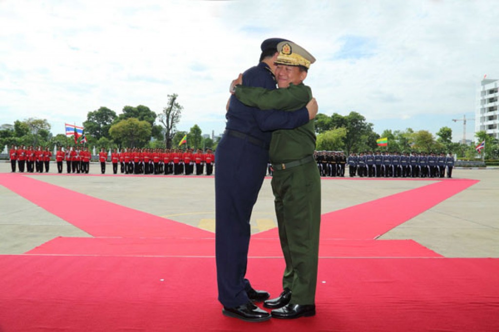 ด้าน พล.อ.อาวุโส มิน อ่อง หล่าย กล่าวยืนยัน ถึงมิตรภาพที่ดีระหว่างกัน และไทยเป็นเพื่อนบ้านใกล้ชิดที่มีความจริงใจต่อกัน รวมทั้ง มีความเชื่อมั่นว่าสิ่งที่กองทัพไทยดำเนินการอยู่ในขณะนี้มีความเหมาะสมที่สุดแล้ว เพราะกองทัพมีภารกิจอันสำคัญยิ่ง คือ การปกป้องประเทศชาติให้มีความมั่นคงและดูแลประชาชนให้มีความปลอดภัย ทั้งนี้กองทัพเมียนมาร์เคยมีประสบการณ์ในเหตุการณ์ที่คล้ายคลึงกัน ถือเป็นความเลวร้ายยิ่งกว่า เมื่อปี ค.ศ.1988 หากพิจารณาจากโรดแมพของคณะรักษาความมั่นคงแห่งชาติแล้ว เรามีความเชื่อมั่นว่าจะประสบความสำเร็จอย่างดียิ่ง และขอบคุณทางการไทยที่ให้การสนับสนุนความช่วยเหลือทางวิชาการ การเผยแพร่หลักปรัชญาของเศรษฐกิจพอเพียงให้แก่เกษตรกรเมียนมาร์ เพื่อนำไปประยุกต์ใช้ให้เกิดประโยชน์กับประชาชนชาวเมียนมาร์