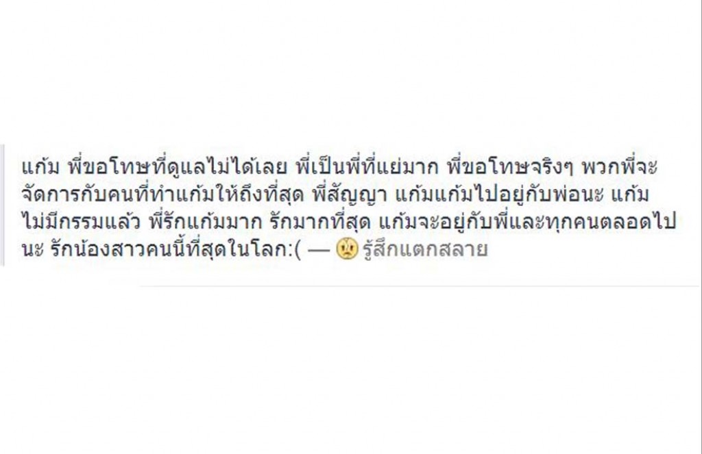 พี่สาว "น้องแก้ม" โพสต์ข้อความตัดพ้อโทษตัวเองดูแลน้องไม่ได้ยันจะจัดการกับคนร้ายให้ถึงที่สุด