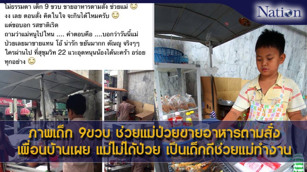 จากกรณีที่มีการเผยแพร่ผ่านโซเชียลมีเดีย เป็นภาพเด็กวัย 9 ขวบ ขายอาหารตามสั่งที่สุขุมวิท 22 แทนคุณแม่ โดยมีข้อความระบุว่า "ไม่ธรรมดา เด็ก 9 ขวบ ขายอาหารหารตามสั่ง ช่วยแม่ งง เลย ตอนสั่ง คิดในใจ จะกินได้ไหมครับ แต่ขอบอก รสชาติเริด ถามว่าแม่หนูไปไหน คำตอบคือ บอกว่าวันนี้ม่ป่วยเลยมาขายแทน...." และแพร่กระจายข้อมูลออกไปอย่างรวดเร็วว่า คุณแม่ของเด็กคนนี้เป็นมะเร็ง