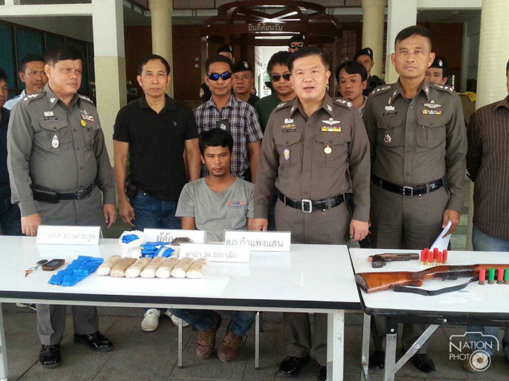 พล.ต.ต.พูลทรัพย์ ประเสริฐศักดิ์ รอง ผบช.ภ. 7 รองผอ.ศพส.ตำรวจภูธรภาค 7 กล่าวว่ จากการจับกุมผู้ต้องหาซึ่งเป็นเครือข่ายค้ายาจากทางภาคเหนือได้พร้อมของกลาง จำนวนกว่า 24,000 เม็ด นั้น สืบเนื่องมาจากทางเจ้าหน้าที่ตำรวจ สภ.กำแพงแสน จ.นครปฐม ได้รับการติดต่อจากสายลับว่า นายป๊อบฯหรืออิฯ ชาวจังหวัดสมุทรปราการซึ่งเป็นเจ้าของยาบ้าชุดดังกล่าว ได้ติดต่อผ่านสายลับว่า ตนเองมียาบ้าอยู่จำนวนมากต้องการระบายออกมีใครสามารถรับไปจำหน่ายต่อได้หรือไม่ จึงได้รายงานให้ผู้บังคับบัญชาทราบ แล้วร่วมกันวางแผนเพื่อทำการล่อซื้อ โดยสายลับได้ใช้โทรศัพท์หมายเลข 061-5098045 ติดต่อไปยังหมายเลข 098-4377303 ซึ่งเป็นเบอร์ของนายป๊อบ หรืออิ เพื่อสั่งซื้อยาจากนายป๊อบหรือนายอิ จำนวน 10 มัด ๆ ละ 2,000 เม็ด รวมเป็นยาบ้าจำนวน 20,000 เม็ด(สองหมื่นเม็ด)โดยนายป๊อบคิดเป็นเงินจำนวน 1,300,000 บาท และนายป๊อบฯ ได้ให้สายลับโอนเงิน จำนวน 40,000 บาทเข้าบัญชีธนาคารกสิกรไทย สาขาเชียงรายโดยแจ้งหมายเลขบัญชีของ น.ส.กัญจนพร ชาว อ.เมืองเชียงราย จ.เชียงราย เป็นค่ามัดจำยาบ้าพร้อมนัดส่งยาบ้าของกลางโดยนายป๊อบฯได้ให้นายนเรศฯหรือนก พิสัยสุข อายุ 36 ปี อยู่บ้านเลขที่ 809/1ม. 2 ต.สำโรงเหนือ อ.เมืองสมุทรปราการ จ.สมุทรปราการ เป็นผู้นำยามาส่งให้ในช่วงค่ำของของวันที่ 1 พ.ย. 57 ที่บริเวณยูเทินหน้าโรงเรียนกำแพงแสนวิทยา โดยนายนเรศ จะใช้ยานพาหนะรถยนต์เก๋ง ยี่ห้อฮอนด้าซีวิค สีน้ำตาล หมายเลขทะเบียน ฆพ-2062 กทม.และใช้เส้นทางถนนสายบางเลน-กำแพงแสน เจ้าหน้าที่ตำรวจจึงได้จัดวางกำลังตามเส้นทางดังกล่าว โดยแบ่งกำลังเจ้าหน้าที่ตำรวจออกเป็น 5 ชุด