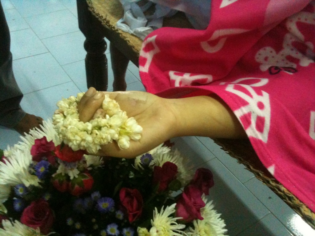 ด้านบรรยากาศงานรดน้ำศพเมื่อเวลา 13.00 น.วันที่ 5 พ.ย.57 ที่วัดบางปอ ต.บางปอ อ.เมือง จ.นราธิวาส นายศุภณัฐ สิรันทวิเนติ รอง ผวจ.นราธิวาส เป็นประธานในพิธีรดน้ำศพ นอกจากนี้นี้ยังมีนายสิทธิชัย ศักดา รอง ผวจ.นราธิวาส ผศ.ดร.จงรัก พลาศัย อธิการบดี ม.นราธิวาสฯ ผศ.ปิยะ กิจถาวร รอง ผอ.ศอ.บต.น.อ.ไมตรี บุตรบุรี รอง ผบ.ค่ายจุฬาภรณ์ รวมทั้งคณาจารย์ นักศึกษาและประชาชนเข้าร่วมพิธีประมาณ 1,000 คน ซึ่งได้มีการมอบเงินช่วยเหลือจำนวนหนึ่งแก่นางสุดาพร ตั้งใจ มารดาของนักศึกษาสาวรายนี้ ขณะที่พิธีฌาปนกิจศพจะมีขึ้นในวันอาทิตย์ที่ 9 พ.ย.57 ที่วัดบางปอ