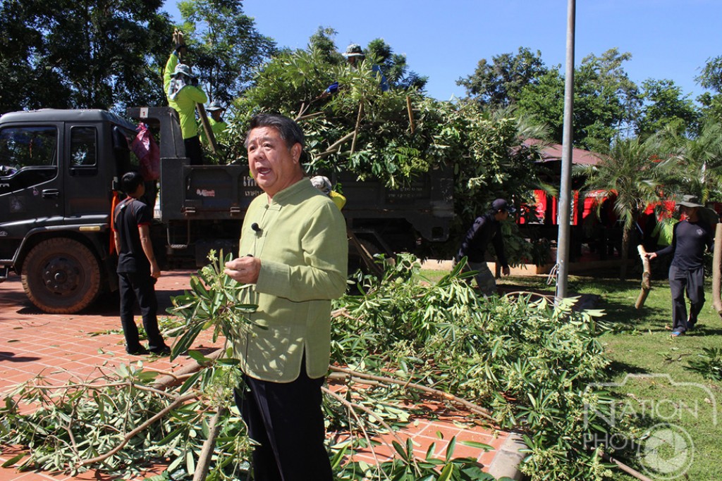 ที่สวนสาธารณะ สวนศรีเมืองสถานพักผ่อนหย่อนใจ ซึ่งเป็นสถานที่ออกกำลังกายของประชาขน ในเขตเทศบาล เมืองน่าน อ.เมือง จ.น่าน นายสุรพล เธียรสูตร นายกเทศมนตรีเมืองน่าน ได้นำเจ้าหน้าที่สำนักงานป้องกันบรรเทาสาธารณภัยเทศบาลเมืองน่าน นำรถกระเช้า พร้อมอุปกรณ์เข้าตัดแต่งกิ่งต้นตีนเป็ด20 ต้น ที่กำลังออกดอกสีขาว บานสะพรั่งสวยงามทั่วบริเวณสวนสาธารณะศรีเมืองน่าน ต.ในเวียง อ.เมือง จ.น่าน