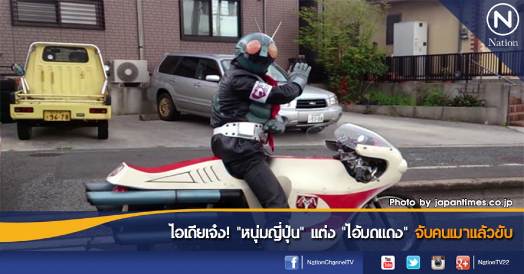 ภาพดังกล่าวนี้คือนายชินจิโร่ คุมาไก ศิลปินอนุรักษ์สิ่งแวดล้อม ที่อุทิศตน ช่วยเหลือชาวเมืองจากคนเมาแล้วขับ ด้วยการแต่งตัวเหมือน "คาเมน ไรเดอร์ วัน (Kamen Raider 1)" และขี่มอเตอร์ไซค์คู่ใจเหมือนกับซูเปอร์ฮีโร่ที่เขาชื่นชอบตัวนี้ ตามจับคนเมาแล้วขับส่งตำรวจ