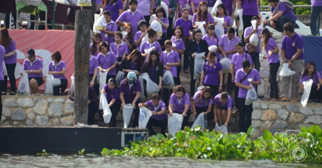 โดยมี พระเทพรัตนสธุี เจ้าอาวาสวดัเขียนเขต เจ้าคณะจังหวัดปทมุธานีมาเป็นประธานฝ่ายสงฆ์ ร่วมด้วยส่วนราชการ พ่อค้า ประชาชนชาวจงัหวดัปทมุธานี ร่วมกันปล่อยปลาพื้นเมืองหรือปลาท้องถิ่นลงสู่แม่น้ำเจ้าพระยาโดยพร้อมเพรียงกันบริเวณเชิงสะพานปทมุธานี1ต.บ้านกลาง อ.เมือง จ.ปทุมธานี