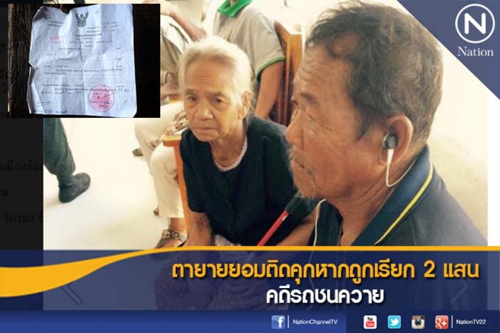 นายถนอม เล่าต่อว่า โดยหลังเกิดเหตุ ทางเจ้าของรถคันดังกล่าวได้โทรศัพท์แจ้งตำรวจ และพอตำรวจมาถึงได้นำตัวตนไปโรงพัก พร้อมคู่กรณีและบอกว่าผิดทั้งสองฝ่าย โดยได้เสียค่าปรับคนละ 100 บาท โดยตนได้จ่ายเงินไป 100 บาท แต่ทางรถไม่ยอมจ่าย โดยบอกว่ามีพ.ร.บ.รถอยู่ โดยตลอดระยะเวลา 1 ปีที่ผ่านมา ตนนึกว่าเรื่องจบแล้ว เพราะไม่มีใครติดต่อมาอีก จนกระทั่งเมื่อประมาณเดือนพฤษภาคม ก็ได้รับหมายศาลให้ไปขึ้นศาล โดยหมายศาลลงวันที่ 30 เมษายน 2558 เพราะทางบริษัทประกันภัย ได้เรียกร้องเงินค่าเสียหายจากตนเป็นเงินรวม 202,819 บาท ตนจึงได้รวบรวมเงินแล้วเหมารถเพื่อนบ้านไปเมื่อวันที่ 4 มิ.ย.ที่ผ่านมา