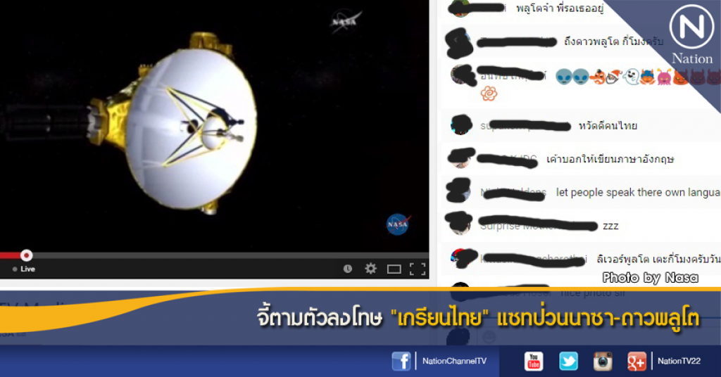 ประเทศไทยต้องกลายชาติที่ถูกนานาชาติประณามหนักมากในช่วงเวลาเพียงสั้นๆ จากการที่มีคนไทยจำนวนไม่กี่คนเข้าไปสร้างความน่าอับอายแก่ชาวโลกในระหว่างที่องค์การบริหารการบินและอวกาศแห่งชาติ สหรัฐอเมริกา หรือ นาซ่า กำลังถ่ายทอดสดช่วงเวลาสำคัญที่ยานสำรวจอวกาศนิว ฮอไรซอนส์ เข้าไปสำรวจดาวพลูโตในระยะใกล้ที่สุดที่ 7,750 ไมล์ หรือ 12,500 กิโลเมตร หลังจากเดินทางท่องอวกาศอยู่นาน 9 ปีเศษ ผ่านทางทีวีของนาซ่า เมื่อเย็นวันที่ 14 กรกฎาคม 58