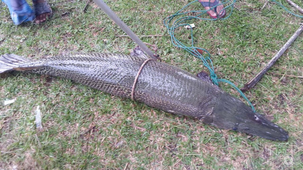 ราชบุรี-เมื่อเวลา10.00น. วันที่19ก.ค.58 ชาวบ้านในหมู่บ้านนิรันดร์ ฮิลล์ ซึ่งตั้งอยู่หมู่9 ต.ดอนตะโก อ.เมือง จ.ราชบุรี ได้พบปลาประหลาด ที่มีรูปร่างคล้ายจระเข้ จำนวน2ตัว โผล่ขึ้นมากินอาหารที่นำไปเลี้ยงปลาในบ่อกลางหมู่บ้าน จึงเกรงว่าอาจจะเป็นปลาอันตราย และอาจจะกินปลาที่เลี้ยงไว้ในบ่อหมด จึงแจ้งให้เจ้าหน้าที่เจ้าหน้าที่มูลนิธิปฐมบรมราชานุสรณ์มาทำการจับไป