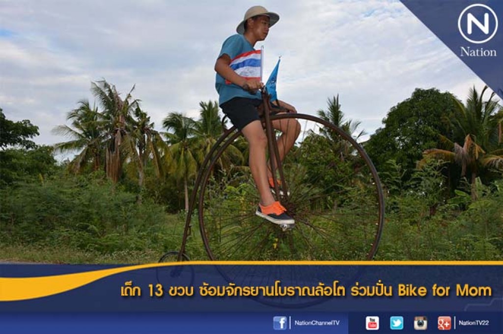 อ่างทอง - เมื่อเวลา 06.00 น. วันนี้ (27 ก.ค. 58) ผู้สื่อข่าวได้เดินทางไปตรวจสอบยังบ้านเลขที่43หมู่ที่2ต.สายทอง อ.ป่าโมก จ.อ่างทอง ซึ่งเป็นบ้านของนายศิริชัยตันเจริญ อายุ51ปี และเด็กชายจิรศักดิ์ตันเจริญ วัย13ปี หลังรับแจ้งว่าที่เด็กชายจิรศักดิ์ หรือน้องบอส จะนำรถจักรยานล้อโตโบราณลงปั่นในโครงการBike of momปั่นเพื่อแม่ในวันที่16สิงหาคมที่จะถึงนี้ ซึ่งเมื่อไปถึงก็พบว่าที่บ้านหลังดังกล่าวเปิดเป็นร้านซ่อมรถจักรยาน บริเวณหน้าบ้านพบรถจักรยานล้อโตแบบโบราณ จอดอยู่ ที่บริเวณแฮนด์รถมีธงชาติละธงตราสัญลักษณ์วันแม่ติดอยู่โดยมีเด็กชายจิรศักดิ์ หรือน้องบอส กำลังนั่งดูแลรักษาและซ่อมบำรุงรถจักรยานคันดังกล่าวอยู่