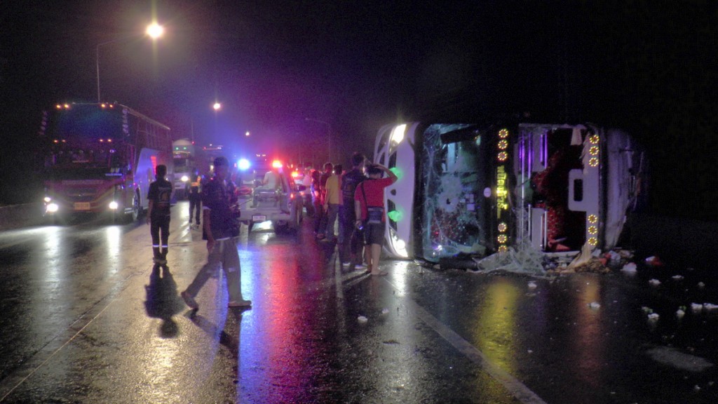 รถบัสนำคณะสงฆ์ไปวัดธรรมกาย พลิกคว่ำที่มวกเหล็ก