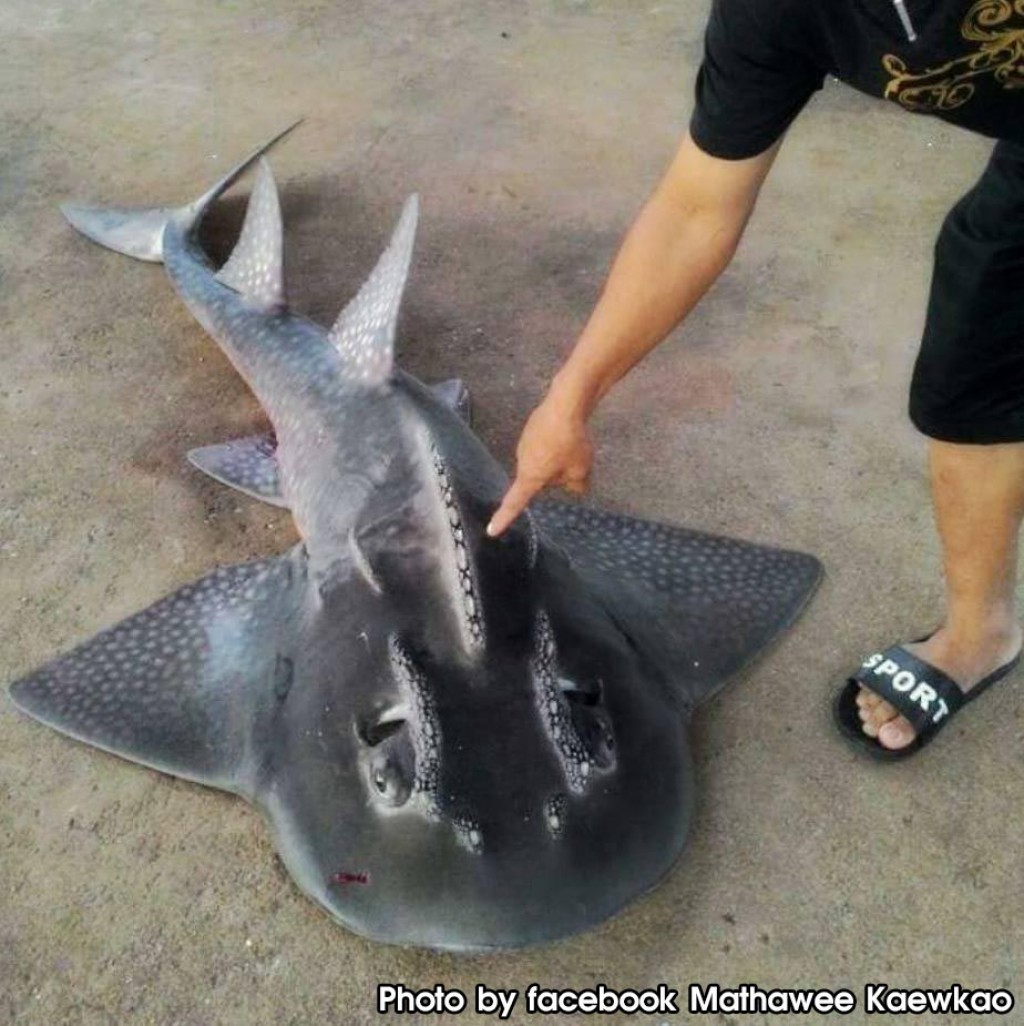 เรื่องน่ารู้เกี่ยวกับโรนิน (Bowmouth Guitarfish) มีดังนี้จ้ะ๑. โรนินเป็นปลาโบราณ กึ่งฉลามกึ่งกระเบน ถ้าโตเต็มวัย ยาวเกือบ ๓ เมตร น้ำหนักเกือบ ๑๕๐ กิโลกรัม เจ้าตัวนี้ยังเป็นเด็กน้อยอยู่๒. คนมักสับสนระหว่างโรนินกับโรนัน แต่ตัวจริงต่างกันเยอะ โรนันหัวแหลมกว่า โรนินหัวทุย ดูภาพโรนันในเมนต์นะฮะ๓. โรนินเป็นปลาหน้าดิน พบในเขตร้อนในมหาสมุทรอินเดียและมหาสมุทรแปซิฟิก โดยเฉพาะในเอเชียตะวันออกเฉียงใต้ พบทั้งบริเวณชายฝั่งและในที่ลึกเกือบ ๑๐๐ เมตร (นับว่าเป็นปลาชายฝั่ง เพราะความลึกแค่นั้นถือว่าเป็นชายฝั่งมหาสมุทร)๔. ปลาโรนินพบได้ทั้งในแนวปะการังและพื้นที่ชายฝั่งทั่วไป ในเมืองไทยเคยมีรายงานพบที่เกาะสิมิลันเป็นระยะ แต่ปัจจุบันเจอน้อยมาก (๒-๓ ปีต่อตัว)๕. ผมเคยเจอโรนินหนเดียวที่เกาะโลซิน กลางอ่าวไทย สมัยเมื่อ ๑๕ ปีที่แล้ว จำได้ติดตาไม่มีวันลืม เจอที่ความลึกเกือบ ๔๐ เมตรครับ ว่ายเร็วเลียบพื้นลงไปในที่ลึกกว่านั้น ถ่ายภาพไม่ได้เพราะถือกล้องมาโครลงไป๖. เมื่อเราเริ่มลากอวนแบบไม่ยั้ง ทำให้ปลากลุ่มนี้โดนจับไปมาก ปลาพวกโรนิน โรนัน และฉนาก ล้วนเป็นปลาออกลูกน้อย เมื่อพ่อแม่โดนจับ ประชากรก็ลดลงอย่างพรวดพราด๗. ปัจจุบัน ปลาฉนากสูญพันธุ์จากทะเลไทยไปแล้ว (เมืองนอกยังเหลือบ้าง) ปลาโรนินใกล้หมดจากทะเลไทยอย่างยิ่งยวด ปลาโรนันเหลือน้อยแต่ยังดีกว่า ๒ ชนิดแรก๘. สปช.และกรมทะเล ตลอดจนเครือข่าย กำลังผลักดันให้โรนิน โรนัน และปลาฉนาก เป็นสัตว์คุ้มครอง พร้อมกับการนำเสนอวาฬบรูด้า ฯลฯ เพื่อเป็นสัตว์สงวน/สัตว์คุ้มครอง คาดว่าภายในปีนี้ น่าจะได้รับการประกาศรายชื่อครับ๙. ระหว่างนี้ หากใครได้ปลาโรนินมา รีบแจ้งเจ้าหน้าที่เลยครับ กรมทรัพยากรทางทะเลและชายฝั่งหรือกรมประมง ได้ทั้งนั้นครับ เขาจะได้เป็นช่วยดูแลรักษาไว้๑๐. มีผู็นิยมนำหนามที่หัวโรนินไปทำแหวน ผมไม่สนับสนุนเด็ดขาดครับ และขายไปก็ไม่ได้ราคามากมาย นำไปให้เจ้าหน้าที่เถอะครับ จะได้ช่วยๆ กันเก็บปลาหายากกลุ่มนี้ไว้ให้ลูกหลานจ้ะ (ดูในภาพที่เขาขูดหนามออกไปแล้ว น่าสงสารมากครับ เศร้าเลย)