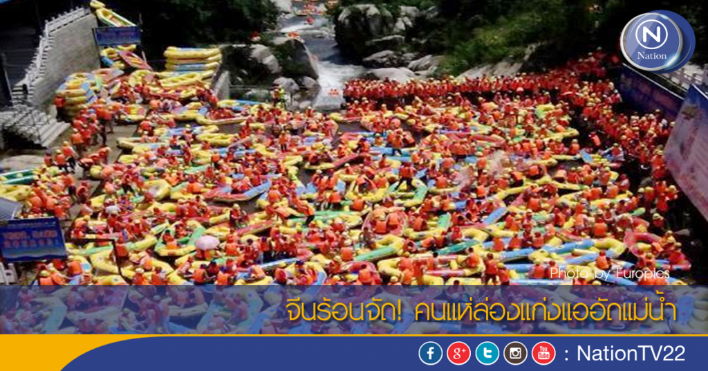 จีนร้อนจัด! คนแห่ล่องแก่งแออัดแม่น้ำ