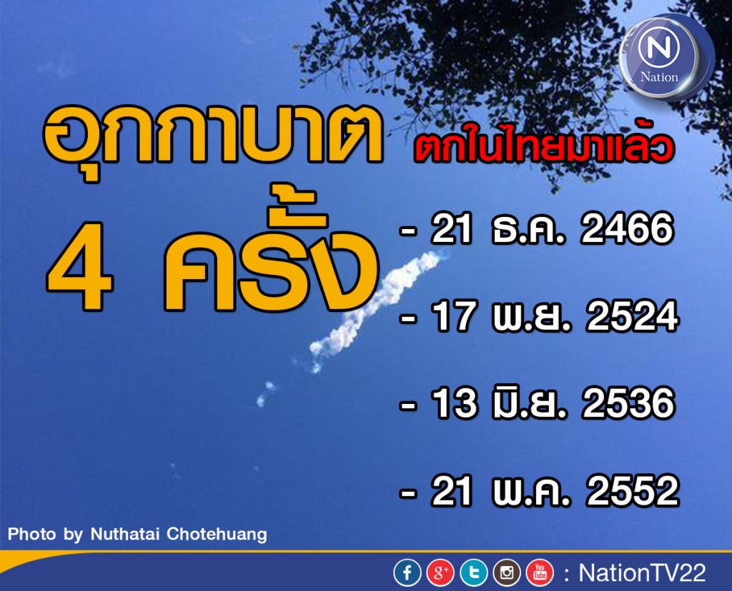 ทั้งนี้ ประเทศไทยเคยมีการเกิดอุกกาบาตตกมาแล้วถึง 4 ครั้ง