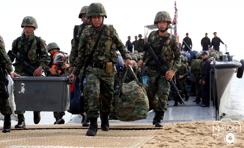 เวลา 06.00 น.วันนี้ (30 กย.) กำลังทหารเรือหน่วยเฉพาะกิจนราธิวาส (นาวิกโยธิน)จำนวน 569 นาย ทยอยลงเรือระบายพลจากเรือหลวงอ่างทองและเรือหลวงสีชัง ขึ้นฝั่งที่ชายทะเลค่ายจุฬาภรณ์ ต.โคกเคียน อ.เมือง จ.นราธิวาส โดยใช้เวลาเดินทางจากกองบัญชาการหน่วยนาวิกโยธิน กองทัพเรือ อ.สัตหีบ จ.ชลบุรี เป็นเวลา 2 วัน 2 คืน เพื่อผลัดเปลี่ยนแทนกำลังพลชุดเก่า ในปีงบประมาณ 2559 ปฏิบัติหน้าที่รักษาความปลอดภัยในเขตรับผิดชอบนพื้นที่ 4 อำเภอ ของจังหวัดนราธิวาส คือ อำเภอเมือง บาเจาะ ยี่งอ และตากใบ