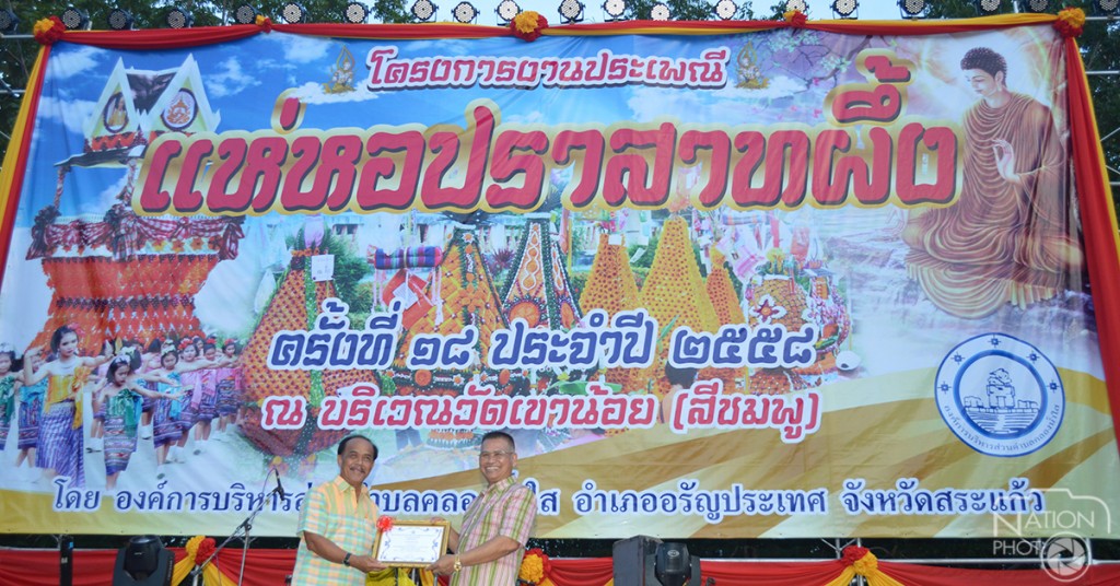 ปัจจุบันนี้ปราสาทผึ้งทั้งหมดในตำบลจึงพากันมารวมตัวที่โรงเรียนอพป.คลองน้ำใสก่อนตั้งเป็นขบวนแห่ไปยังลานวัดเขาน้อยสีชมพูเพื่อรอผลการตัดสินและให้นักท่องเที่ยวได้มาชื่นชม ที่ตำบลคลองน้ำใสนี้มีอยู่ ๑๒ หมู่บ้าน เกือบทั้งหมดเป็นชาวไทญ้อที่เชื่อกันว่าอพยพมาจากลาวผ่านกัมพูชาเข้ามาอยู่ในอรัญประเทศมานานนักหนาแล้ว เมื่อ ๗ ปีก่อน ทาง อบต.ฯได้ริเริ่มให้มีการประกวดปราสาทผึ้งขึ้น โดยแบ่งออกเป็น ๓ ประเภทคือ ประเภทอนุรักษ์ ประเภทสวยงาม และประเภทความคิดสร้างสรรค์ มีเงินรางวัลให้เป็นสินน้ำใจเล็กๆ น้อยๆ นอกจาก อบต.คลองน้ำใส ประเพณีการถวายปราสาทผึ้งในเทศกาลออกพรรษา ยังมีปรากฏในละแวกใกล้เคียง เช่นที่วัดหนองเอี่ยน วัดแสนสุข สำนักสงฆ์เล็กๆ ใกล้ชายแดน นับปราสาทผึ้งได้ราวสิบกว่าหอดังกล่าว
