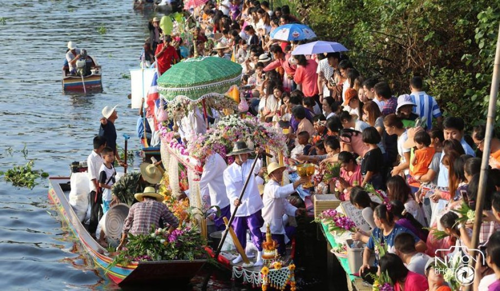 ทั้งนี้ ประเพณีตักบาตรพระร้อยทางเรือ เขตลาดกระบัง ถือเป็นประเพณีตักบาตรเทโวทางน้ำหนึ่งเดียวในพื้นที่กรุงเทพมหานคร จัดขึ้นในวันอาทิตย์แรกหลังวันออกพรรษาของทุกปี เป็นวัฒนธรรมประเพณีของคนไทยเชื้อสายมอญในชุมชนเลียบคลองมอญ เขตลาดกระบัง คำว่าพระร้อยหมายถึงการนิมนต์พระสงฆ์ จำนวน 100 รูป มารับบิณฑบาตทางเรือ ลักษณะเป็นการตักบาตรคล้ายกับการตักบาตรเทโวโรหณะ แต่ใช้เรือเป็นพาหนะมารับบิณฑบาต ซึ่งเป็นเรือที่เก็บรักษาและอนุรักษ์ไว้เป็นอย่างดี โดยประชาชนจะนั่งคอยใส่บาตรพระเรียงรายอยู่ริมตลิ่งตามแนวคลองลำปลาทิวยาวนับหลายร้อยเมตร