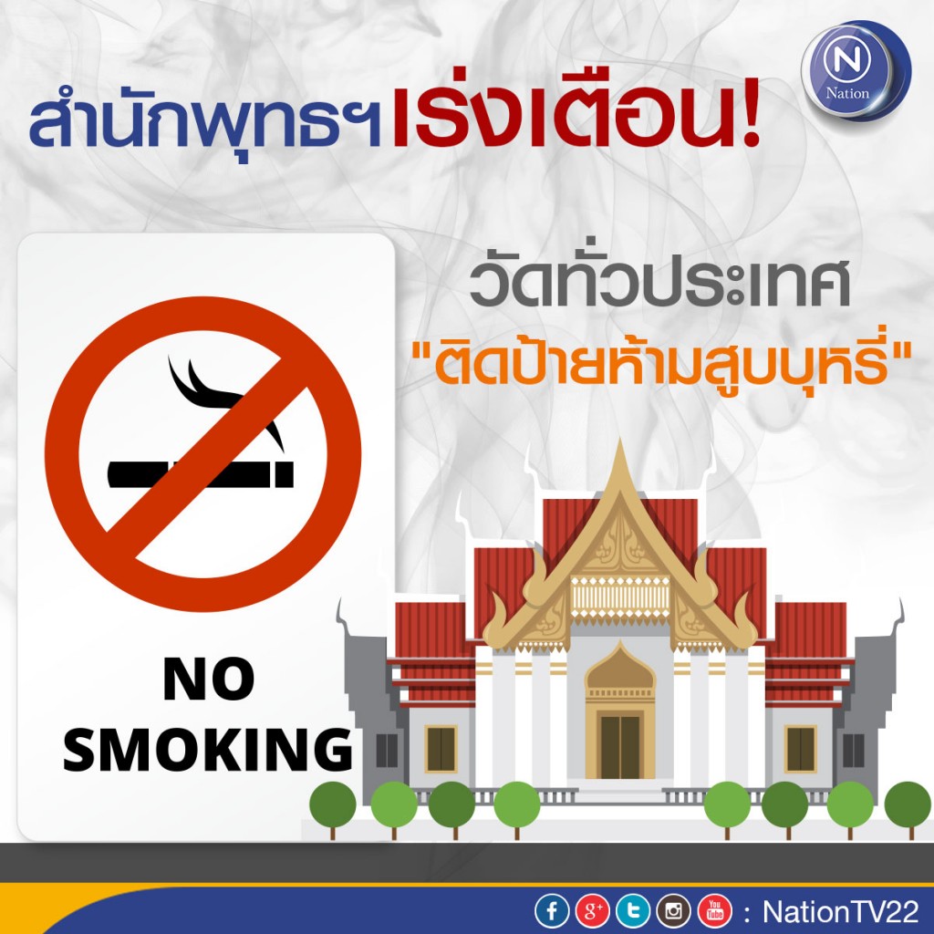 สำนักพุทธฯ เร่งเตือนวัดทั่วประเทศ "ติดป้ายห้ามสูบบุหรี่"