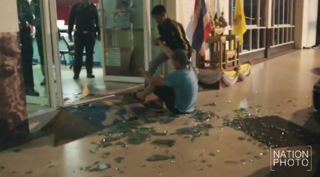 จากนั้นก็เดินเซออกจากห้องน้ำ ระหว่างที่กำลังเดินเพื่อออกจากโรงพักนั้น นายจอนส์ ซึ่งอยู่ในอาการเมาอย่างหนักไม่ระวังเดินชนประตูโรงพักอย่างแรง ซึ่งเป็นประตูกระจกแบบผลักเข้า-ออก จึงทำให้ประตูกระจกฝั่งด้านซ้ายนั้นแตกกระจายเกลื่อนพื้นโรงพัก และเศษกระจกก็ตกบาดที่ข้อเท้าขวาของนายจอนส์ เป็นแผลฉกรรจ์ขนาดใหญ่รวมถึงที่บริเวณแขนทั้งสองข้างก็ถูกบาดเช่นกัน เลือดนั้นไหลอาบนองพื้นโรงพัก ท่ามกลางความตกใจของพนักงานสอบสวนรวมถึงประชาชนที่อยู่ภายในโรงพัก ซึ่งหลังเกิดเหตุเจ้าหน้าที่ตำรวจและประชาชนก็รีบเข้าช่วยเหลือพยุงร่างของนายจอนส์ มานั่งไม่ให้เดินไปไหนเพราะมีอาการเมาอย่างหนัก พร้อมประสานงานเจ้าหน้าที่หน่วยกู้ภัยมูลนิธิสว่าางบริบูรณ์ฯเมืองพัทยา มาปฐมพยาบาลปิดแผลห้ามเลือดให้กับนายจอนส์ก่อนพาตัวส่งไปรักษาที่โรงพยาบาลพัทยาเมโมเรียล