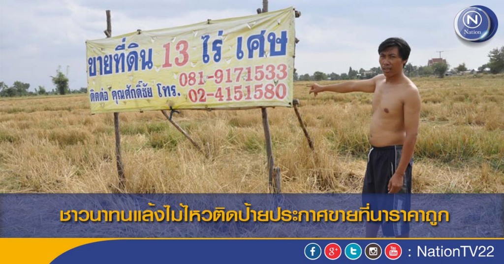 วันที่ 12 ม.ค. ผู้สื่อข่าวรายงานว่า ชาวนาในพื้นที่ อ.โนนสูง จ.นครราชสีมา ได้ติดป้ายประกาศขายที่นากันเป็นจำนวนมาก ทั้งนี้ภายหลังจากทางจังหวัดนครราชสีมา ได้ประกาศพื้นที่ประสบภัยพิบัติแล้งไปแล้ว 8 อำเภอ ซึ่งอำเภอโนนสูง เป็นหนึ่งในพื้นที่ประสบภัยแล้งเป็นบริเวณกว้าง ส่งผลให้ไม่สามารถปลูกพืชผลการเกษตรได้ในช่วงนี้ จึงทำให้เกษตรกรหลายคนตัดสินใจติดป้ายประกาศขายที่นากันเป็นจำนวนมาก