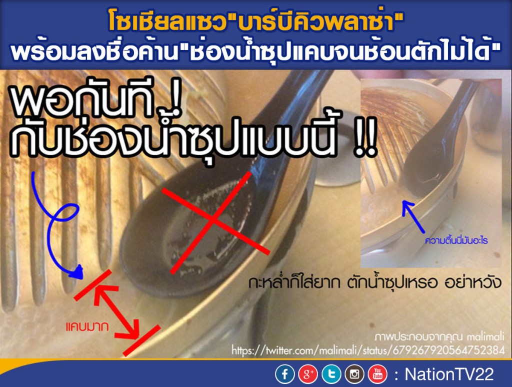 เนื่องจากมีผู้ใช้ทวิตเตอร์บัญชี @malimali โพสต์ภาพกระทะทองเหลืองปิ้งย่างของร้านอาหารบาบีก้อน พร้อมข้อความระบุ "เชิญชวนประชาชน ร่วมรณรงค์ช่องซุปบาร์บีคิวพลาซ่า ให้มีความกว้างที่เหมาะสมกับช้อนตักซุป" จนมีผู้เข้ามารีทวิตกว่า13,000 คน