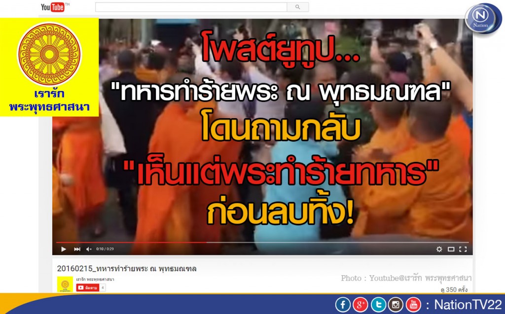 ล่าสุด สมาชิก YouTube ชื่อ "เรารัก พระพุทธศาสนา" ได้โพสต์ภาพคลิปวิดีโอลงในเว็บไซต์ยูทูบ พร้อมตั้งชื่อคลิปว่า "ทหารทำร้ายพระ ณ พุทธมณฑล" ซึ่งเป็นคลิปเหตุการณ์ชุลมุนระหว่างทหารกับกลุ่มพระสงฆ์ที่พุทธมณฑล ในวันเดียวกัน พร้อมกันนั้นได้เรียกร้องให้สื่อมวลชนนำเสนอข้อเท็จจริง