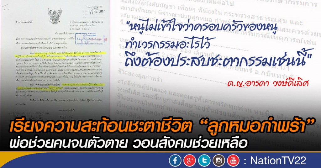 เรียงความสะท้อนชะตาชีวิต “ลูกหมอกำพร้า” พ่อช่วยคนจนตัวตาย วอนสังคมช่วยเหลือ