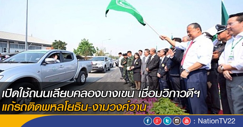 24มี.ค.ที่บริเวณโครงการก่อสร้างถนนเลียบคลองบางเขน (ถนนชั่วคราว) ด้านถนนวิภาวดีรังสิตเขตจตุจักรม.ร.ว.สุขุมพันธุ์บริพัตรผู้ว่าราชการกรุงเทพมหานคร(กทม.)เป็นประธานในพิธีเปิดการจราจรถนนเลียบคลองบางเขนโดยมีคณะผู้บริหารกรุงเทพมหานครสำนักการโยธาและหน่วยงานที่เกี่ยวข้องร่วมงาน