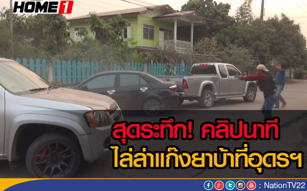 โดยยาบ้ายังระบาดอย่างหนักที่ จ.อุดรธานี ทำไห้ตำรวจต้องออกปฏิบัติการไล่ล่าแก๊งยาบ้า ล่าสุดวานนี้ทางสถานีเคเบิ้ลทีวีท้องถิ่น โฮมเคเบิ้ลทีวี ได้เสนอภาพข่าวคลิปนาที ตำรวจอุดรธานี และตำรวจชุดปราบปรามยาเสพ ติดไล่ล่าแก๊งค้ายาบ้า ขณะที่กำลังขับรถยนต์หนีตำรวจ ทำให้ตำรวจต้องยิงยางรถเก๋งที่แก๊งยาบ้าใช้ขับเตรียมหลบหนีเหมือนในหนัง ซึ่งทางตำรวจกำลังเข้าล้อมจับแก๊งยาบ้าชาวไทยและชาวลาว เมื่อช่วงเย็นวานนี้ เหตุเกิดที่บ้านโนนสูง หลังตลาดเทศบาลตำบลโนนสูง อ.เมือง จ.อุดรธานี