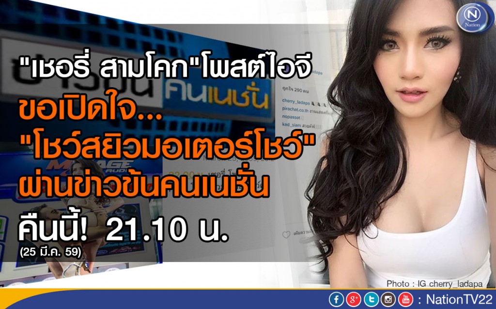ล่าสุด "เชอรี่ สามโคก" ได้โพสต์ไอจีส่วนตัวขอแจงปมร้อน"โชว์สยิวมอเตอร์โชว์"อีกครั้ง โดยโพสต์ภาพระบุข้อความว่า "22.00 น. เชอร์รี่ โฟนอิน กรณีโชว์สยิวมอเตอร์โชว์ค่ะ"ซึ่งเธอจะโฟนอินผ่านรายการข่าวข้นคนเนชั่น คืนนี้(25 มี.ค. 59) เวลา 21.10 น. ทางเนชั่นทีวีช่อง 22 โดยมีพิธีกรดำเนินรายการสุดฮอต กนก รัตน์วงสกุล, ธีระ ธัญไพบูลย์ และปรัชญา อรเอก พร้อมซักทุกข้อสงสัยแบบเจาะลึก
