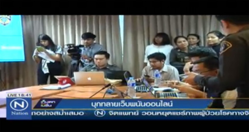 พล.ต.ท.ฐิติราช เปิดเผยว่า สืบเนื่องจาก 2-3 ปีก่อน มีการจับพนันออนไลน์ได้ ซึ่งส่วนใหญ่เป็นชาวต่างชาติ โดยผ่านกระบวนการคอลเซ็นเตอร์ และปัจจุบัน ปอท.ทราบว่า คอลเซ็นเตอร์ มีการย้ายถิ่นฐานจากไทยไปอยู่ประเทศเพื่อนบ้าน ลักษณะแผนประทุษกรรมคล้ายๆกัน โดยมีการพยายามหลบเลี่ยงหรือปกปิดใน 4 ลักษณะ คือปกปิดโดนเมนเนม สถานที่ตั้งเซฟเวอร์ บัญชีธนาคารเว็บไซต์พนัน โทรศัพท์ นอกจากนี้ยังพบว่ากลุ่มพนันออนไลน์จะใช้สัญญาณอินเทอร์เน็ตของไทย และมีการลากสายสัญญาณข้ามแดน ทำให้ต้องตรวจสอบว่า มีกลุ่มบุคคลใดให้การสนับสนุนหรือไม่