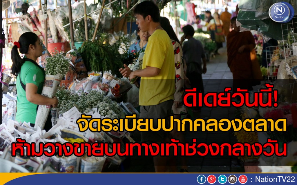 ประธานที่ปรึกษาผู้ว่าฯกทม. นายวัลลภ สุวรรณดี บอกว่า ได้ประชุมเตรียมความพร้อมจัดระเบียบผู้ค้าปากคลองตลาดโดยย้ำถึงแผนจัดระเบียบพื้นที่ ซึ่งเริ่มตั้งแต่วันนี้(1 เม.ย.)ต้องไม่มีผู้ค้าทำการค้าขายบนทางเท้าบริเวณปากคลองตลาดในช่วงกลางวัน ส่วนกลางคืนยังผ่อนผันให้ผู้ค้าขายได้ตั้งแต่ 2 ทุ่มครึ่งจนถึงตี 4 ครึ่ง ถึงวันที่ 30 มิ.ย.นี้ หลังจากนั้นวันที่ 1 ก.ค.นี้ จะต้องไม่มีการค้าขายบนทางเท้าตลอดทั้งวัน