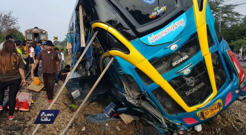 เกิดอุบัติเหตุรถบัสตัดหน้าขบวนรถไฟนำเที่ยว กทม. - ไทรโยค โดยมีผู้ได้รับบาดเจ็บราว 25 ราย เสียชีวิต 3 ราย