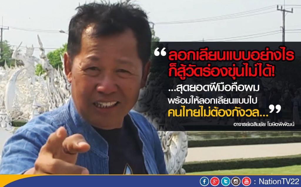 "เมื่อ 4 ที่ผ่านมา มีเศรษฐีจีนได้มาขอจ้างอาจารย์ให้ไปสร้างวัดร่องขุ่นที่ชายแดน จีน-สปป.ลาว บนเนินเขาสวยงาม มาแล้ว ในราคาจ้าง หลายคนฟังแล้วจะตกใจคือ 2,000ล้านบาท ดังนั้นสรุปได้เลยว่า เงินซื้อผมไม่ได้ผม ผมต้องการจะสร้างความสวยงามให้เกิดขึ้นกับประเทศไทย ดังนั้นไม่ใช่เรื่องแปลกที่จะมีการลอกเรียนแบบวัดร่องขุ่นไปสร้างที่อื่น" อาจารย์เฉลิมชัย กล่าว