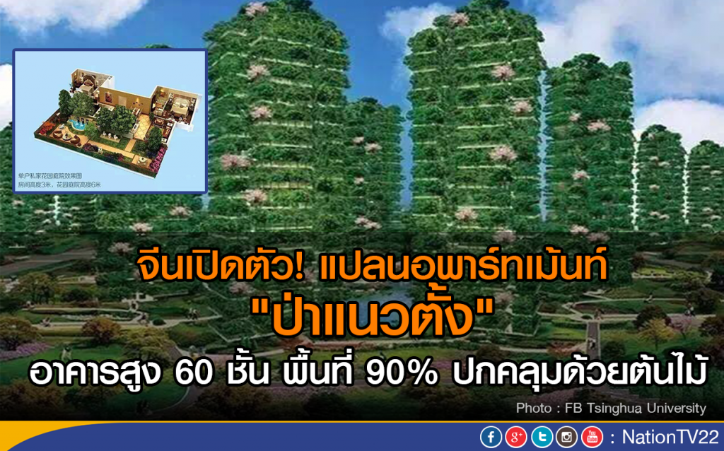 เฟสบุ๊คมหาวิทยาลัยชิงหวา ได้โพสต์และลงภาพของสถาบันเพื่อการออกแบบและวิจัยทางสถาปัตยกรรม ชิงหวา เปิดตัวแบบจำลองอพาร์ทเม้นท์ที่เน้นธรรมชาติ เมื่อเดือนมีนาคมที่ผ่านมา โดยอาคารดังกล่าวมีความสูงถึง 60 ชั้น และ 90% ของอาคารจะเป็นพื้นที่ถูกปกคลุมด้วยต้นไม้หรือพืชพรรณนานาชนิด เหมาะสำหรับคนรักธรรมชาติที่พักอาศัยอยู่ในเมือง